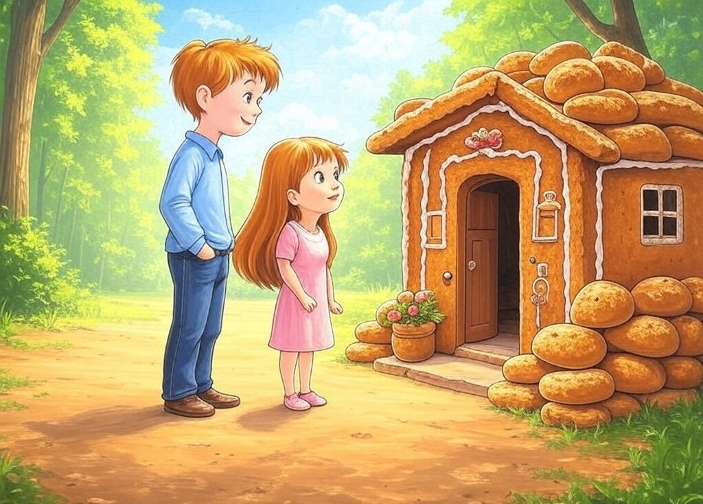 Штом се разденило, Ивица и Марица почнале да талкаат барајќи го патот до нивниот дом. Но, шумата била голема, а братот и сестрата не можеа да го најдат својот дом. Застранија од сите патишта и на крајот целосно се изгубија. Набрзо станале многу гладни и уморни, но потоа, одеднаш, пред себе здогледале необична куќа. Кога се приближиле до неа, сфатиле дека е направен од чоколадо, колачиња, бонбони и вкусни додатоци!
